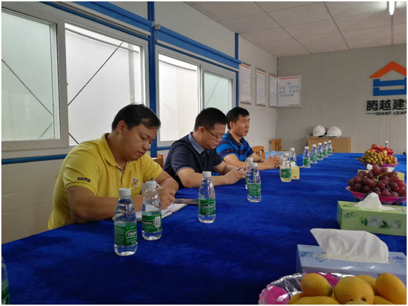抵达施工现场,马总、邓总第一时间召开紧急部署协调会议,围绕主体—装修—节能—技术验收等内容展开指导。进一步强调分级管理的重要性,确立现场进度、质量解决方案。针对项目任务重、进度赶现状,马总表示公司将给予最大的支持,为现场配足人手。马总强调项目一定要加强精细化管理,对管理人员定责定量、奖罚分明。